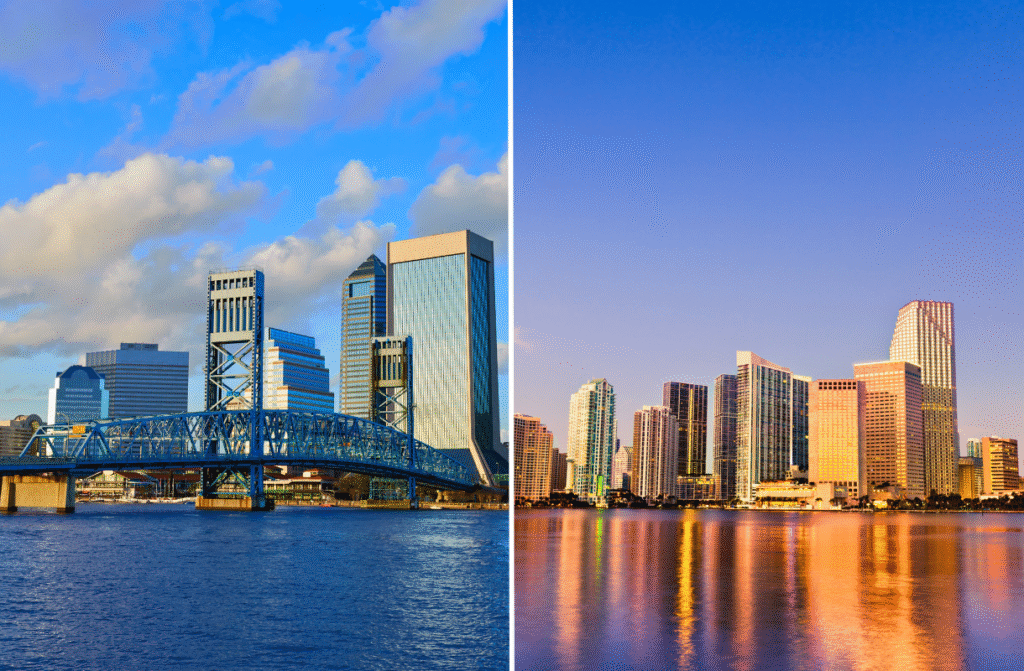 Mercados como Miami presentan precios más elevados por su posicionamiento internacional, mientras que ciudades como Jacksonville ofrecen mayor accesibilidad y espacio.